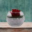 Bouton de rose éternelle Rouge en forme de cœur perles blanches.