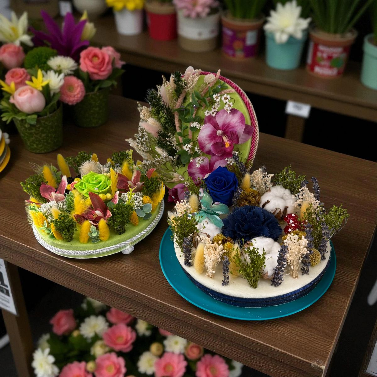 Gâteau de fleurs séchées et stabilisées.
