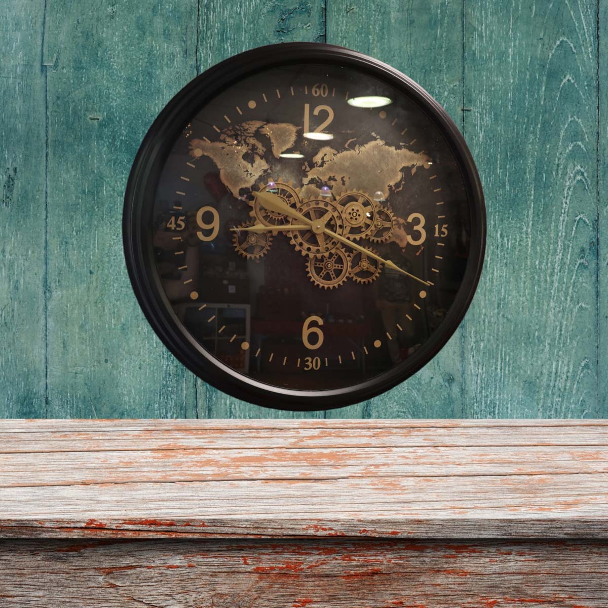 La boutique Naturebulle vous propose cette magnifique horloge murale. L’horloge murale est ornée d’une belle image de la carte du monde et la finition de l’horloge est magnifique avec des accents de bronze.