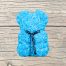 Ourson mousse en roses turquoises artificielles dans sa boite.